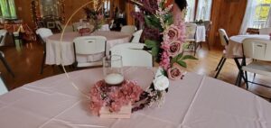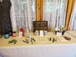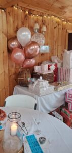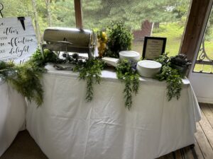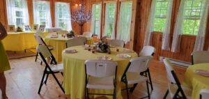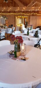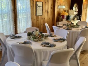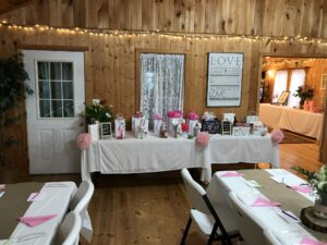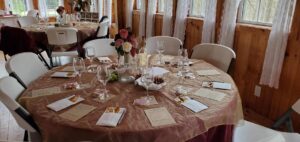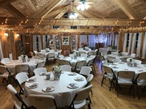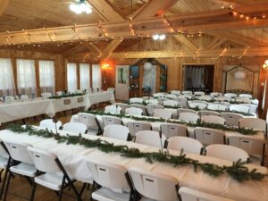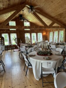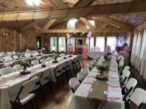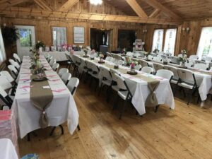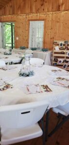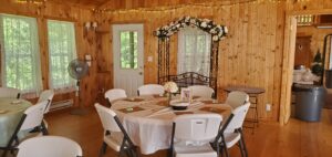Besides hosting rustic country weddings, our Retreat Center is an ideal location for bridal showers and baby showers, business meetings, educational and training sessions. We have a wide projector screen for video presentations. A full size refrigerator is available for your needs. There is ample parking for any size event. Meadowwood is located alongside a beautiful woods laden with enormous boulders left behind from the last ice age glaciers. We know you will enjoy our rustic retreat center for your next special event. We also hosts events for a variety of crafters including quilters. Call us for more information.