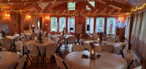 Our Meadowwood Retreat Center is ideal for hosting rustic country weddings/receptions. It has an all pine interior including the high cathedral ceiling and two wood beamed trusses. Meadowwood is very charming and will be a unique venue for your wedding. We can accommodate up to 120 guests. Our surrounding grounds can easily accommodate tent weddings/receptions of 250 or more.